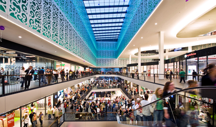 The Centrum Galerie boasts 52,000 square metres of retail space and is home to over 100 shops, cafés, restaurants and service-sector businesses spread over four storeys. Its characteristic retromodern facade and mall concept were designed by the Dresden-based architect Peter Kulka. Both the aluminium honeycomb used to create the facade and the name given to the shopping centre are mementos of the Centrum department store that stood on the site until 2006. A subsequent three-year planning and building phase ended with the opening of the Centrum Galerie on the 17th of September 2009.