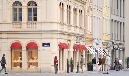 Dresden’s Altstadt district represents a great opportunity to combine sightseeing with shopping. Rail travellers who alight at Dresden’s main station are already right at the heart of the city. The Kugelhaus and so-called "Prager Spitze" stand directly opposite the station and welcome visitors to Dresden with modern architecture and a number of places to enjoy a cup of coffee before setting off to look for some bargains.Located right outside the station, Wiener Platz is characterized by its glass cubes and the sandstone of Dresden’s modernized main station, which was turned from a transport hub into one of Germany’s most attractive stations by the world-famous British architect Sir Norman Foster. The translucent membrane of the two-storey station’s roof gleams white at night and floods the arrival halls with light as they greet travellers to the city. The underground shopping arcade which has since been added to the station enables Dresden’s citizens and visitors alike to shop at a great range of retail outlets seven days a week.