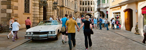 Even as Prager Straße ends the top-quality shopping experience continues just over the road at the Altmarkt-Galerie – another stylish shopping centre featuring around 200 retail outlets. The Altmarkt itself and the surrounding streets are lined with smaller boutiques.The Altmarkt represents the social heart of the city. Characterized by an intriguing collection of buildings including the historic Kreuzkirche, a number of 1950s arcades and the GDR-era Kulturpalast, the square brings together people of all ages for markets, festivals and concerts which are as diverse as the huge number of visitors who attend them. Germany’s oldest Christmas market – the Striezelmarkt – is a perennial highlight and attracts around a million tourists from around the globe to Dresden. All year round the surrounding area is full of opportunities to please your eyes, ears and taste buds – we particularly recommend taking a stroll through Seestraße to the bars and cafés of Weisse Gasse.
